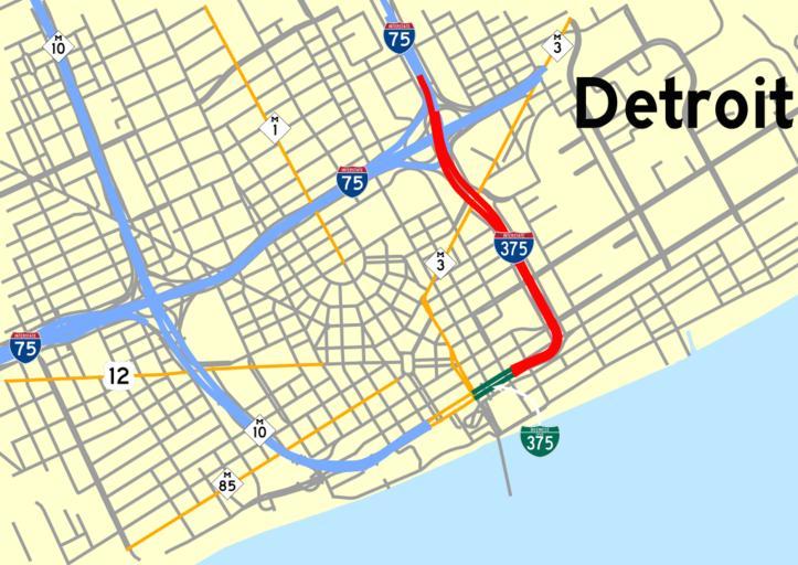 Keywords: Interstate 375 (Michigan) map.svg Map of downtown Detroit with I-375 and BS-375 highlighted Own 2008-10-02 Kelley Cook Interstate 375 Michigan Maps of Detroit 375 Road maps of Interstate Highways in Michigan 375