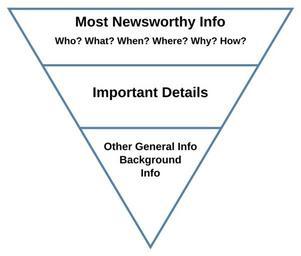 Keywords: Inverted pyramid.svg The Inverted pyramid technique of journalism writing Inverted_pyramid jpg 2011-01-24 09 00 UTC Inverted_pyramid jpg The Air Force Departmental Publishing Office AFDPO derivative work Makeemlighter Vector text versions Inverted pyramid 2 svg ; Translations Arabic Korean Redrawn as SVG Makeemlighter Inverted_pyramid jpg Original upload log This image is a derivative work of the following images File Inverted_pyramid jpg licensed with PD-USGov-Military-Air Force 2011-01-23T21 26 05Z P S Burton 718x569 31907 Bytes <nowiki> http //www shaw af mil/library/editorialpolicy submissions/newsarticles asp US Air Force Shawn Air Force Base 20th FW Editorial Policy Submission Guidelines Not given T</nowiki> Uploaded with derivativeFX Journalism |