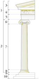 Keywords: Ionic order.svg Ionic order<br> 1 - entrablature<br> 2 - column<br> 3 - cornice<br> 4 - frieze<br> 5 - architrave or epistyle<br> 6 - capital composed of abacus and volutes <br> 7 - shaft<br> 8 - base<br> 9 - stylobate<br> 10 - stereobate ordine ionico <br> 1 - trabeazione<br> 2 - colonna<br> 3 - cornice<br> 4 - fregio<br> 5 - architrave o epistilio<br> 6 - capitello composto da abaco e volute <br> 7 - fusto<br> 8 - base<br> 9 - stilobate<br> 10 - stereobate porządek joński <br> 1 - belkowanie<br> 2 - kolumna<br> 3 - przyczółek<br> 4 - fryz<br> 5 - architraw<br> 6 - kapitel<br> 7 - trzon kolumny<br> 8 - baza<br> 9 - stylobat<br> 10 - stereobat Ионический о де <br/> 1 aнтаблемент<br/> 2 колонна<br/> 3 ка низ<br/> 4 ф из<br/> 5 а хит ав или эпистиль<br/> 6 капитель состоящая из абаки и волют <br/> 7 ствол<br/> 8 основание<br/> 9 стилобат<br/> 10 сте еобат Own 2007-02-01 F l a n k e r F l a n k e r Drawings of Ionic order Drawings of Ionic columns Ionic order 12 19 24 September 2008 UTC |