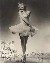 Keywords: IrinaBaronova.jpg Irina Baronova PD-Russia-2008 Irina Baronova Autographs Swan Lake Fifth position en pointes Black and white photographs of ballet