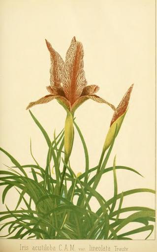 | Keywords: Iris acutiloba C.A.Mey. var. lineolata Trautv.jpg en Iris acutiloba C A Mey var lineolata Trautv ru Iris acutiloba C A Mey var lineolata Trautv В Фомин А В Заметки и наблюдения относительно некото ых астений Кавказа // Т уды Тифлисского ботанического сада Выпуск VI книжка 3-я Тифлис Типог афия К П Козловского 1904 С 42 http //www archive org/download/trudytiflisskago06tifl/trudytiflisskago06tifl pdf Ernst Rudolph von Trautvetter 1809 1889 1904 PD-old Iris acutiloba subsp lineolata Alexandr Fomin Ernst Rudolph von Trautvetter |