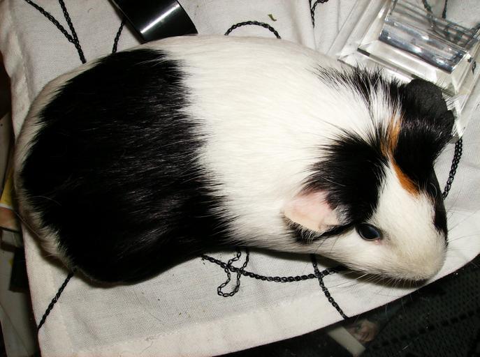 Keywords: Iris Guinea Pig.JPG My female guinea pig Iris Own 2007-10-08 Type0 Smooth Haired cavies Tortoiseshell and white cavies Bird's-eye views of cavies
