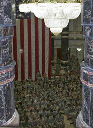 | Keywords: Ironhorse Soldiers 'on top of the world' after becoming U.S. citizens DVIDS113335.jpg  en Soldiers from the 4th Infantry Division and Multi-National Division  Baghdad along with service members from across Iraq wait in the central rotunda of the Al Faw Palace for the naturalization ceremony to begin Sept 1 2008 that will usher them in as new citizens of the United States of America 2008-09-01 Staff Sgt Scott Wolfe https //www dvidshub net/image/113335 113335 2008-09-05 14 42 BAGHDAD IQ PD-USGov Al-Faw Palace Images from DoD uploaded by FĂŚ |