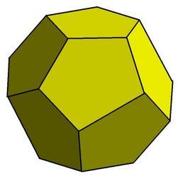 Keywords: Irregular dodecahedron.png en wikipedia 2011 October 18 polyhedron Source data Created from vertices listed at http //www steelpillow com/polyhedra/wp/wp htm Obj format <pre> irregular dodecahedron http //www steelpillow com/polyhedra/wp/wp htm v -3 1498 0 6 2996 v 3 1498 0 6 2996 v 4 1997 4 1997 4 1997 v 0 6 2996 3 1498 v -4 1997 4 1997 4 1997 v -4 1997 -4 1997 4 1997 v 0 -6 2996 3 1498 v 4 1997 -4 1997 4 1997 v 6 2996 3 1498 0 v -6 2996 3 1498 0 v -6 2996 -3 1498 0 v 6 2996 -3 1498 0 v 4 1997 4 1997 -4 1997 v 0 6 2996 -3 1498 v -4 1997 4 1997 -4 1997 v -4 1997 -4 1997 -4 1997 v 0 -6 2996 -3 1498 v 4 1997 -4 1997 -4 1997 v 3 1498 0 -6 2996 v -3 1498 0 -6 2996 g pentagons f 1 2 3 4 5 f 16 17 18 19 20 f 1 2 8 7 6 f 2 3 9 12 8 f 3 4 14 13 9 f 4 5 10 15 14 f 5 1 6 11 10 f 16 17 7 6 11 f 17 18 12 8 7 f 18 19 13 9 12 f 19 20 15 14 13 f 20 16 11 10 15 </pre> 2007-10-29 Own <br />Transferred from http //en wikipedia org en wikipedia Tomruen at http //en wikipedia org en wikipedia en wikipedia Tomruen Original upload log page en wikipedia Irregular_dodecahedron png 2007-10-29 23 24 Tomruen 712×728 20875 bytes <nowiki>A space-filling polyhedron Source data Obj format irregular dodecahedron http //www steelpillow com/polyhedra/wp/wp htm v -3 1498 0 6 2996 v 3 1498 0 6 2996 v 4 1997 4 1997 4 1997 v 0 6 2996 3 1498 v </nowiki> Minimal surfaces Polyhedra |