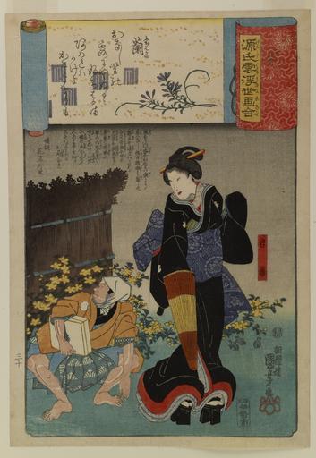 | Keywords: Iseya Ichibei - Genjigumo ukiyo-e awase - Walters 95110.jpg The evil lady-in-waiting Iwafuji plots to kill the shogun in the play Kagamiyama kokyo no nishikie The Women's Chushingura This chapter of The Tale of Genji also concerns ladies-in-waiting and divided loyalties at the court 1845-46 late Edo pigments mulberry paper cm 36 8 25 5 accession number 95 110 2912 Justine Lewis Keidel date and mode of acquisition unknown Walters Art Museum Gift of Justine Lewis Keidel 1986 Signature Chooro Kuniyoshi ga; Transcription Genban Ise-shi; Translation First published Ise city place of origin Edo present-day Tokyo Japan Walters Art Museum license 2D Japanese prints in the Walters Art Museum Historic samurai prints Media contributed by the Walters Art Museum needs category review Utagawa Kuniyoshi |
