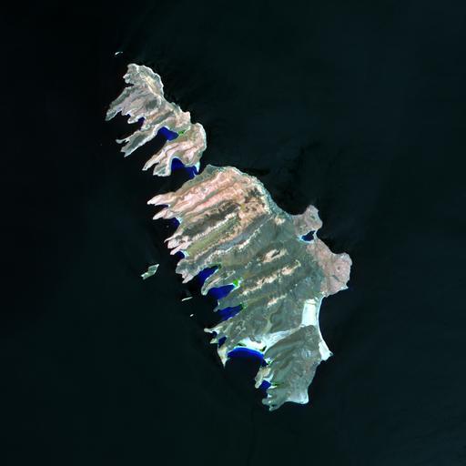 | Keywords: Isla Espiritu Santo, Baja California, Image of the Day DVIDS846268.jpg en A string of rocky islands stretch southward along the western edge of the long narrow Gulf of California which separates Baja from mainland Mexico Pictured in this Advanced Spaceborne Thermal Emission and Reflection Radiometer asterweb jpl nasa gov ASTER image from June 7 2002 are Isla Espiritu Santo south and Isla Partida north two islands located in the waters northeast of the city of La Paz in southern Baja Isla Espiritu Santo is made up of alternating layers of lava and volcanic ash On the smoother east coast steep cliffs drop into the water The western side of the island is toothed like a comb with a series of rocky points separated by shallow bays Thin xeric vegetation gives the island its greenish color in the image while bare ground appears pinkish-orange Small mangrove swamps tucked into the west coast bays appear bright green Beaches are composed of fine coralline sand The California Gulf islands are subject to the region's arid climate and yet unique animals and plants do inhabit them More than one island is home to a species of plant or animal found only on that island NASA Identifier aster_islaespiritusanto_07jun02 2011-07-03 Glenn Research Center https //www dvidshub net/image/846268 846268 2013-02-08 11 38 WASHINGTON D C US PD-USGov Espiritu Santo Images from DoD uploaded by Fæ |