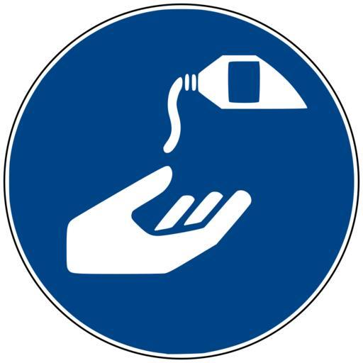 | Keywords: ISO 7010 M022.svg de Gebotszeichen M022 Hautschutzmittel benutzen<br />Technische Regeln für Arbeitsstätten - Sicherheits- und Gesundheitsschutzkennzeichnung en Mandatory action sign M022 Use barrier cream ISO 7010 own 2014-11-05 ISO 7010 mandatory action signs ISO 7010 safety signs vector drawings |