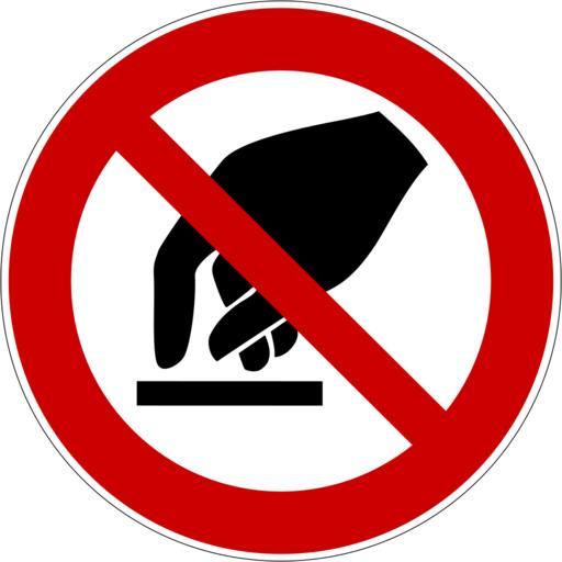 | Keywords: ISO 7010 P010.svg Verbotszeichen P010 Berühren verboten Prohibition sign P010 Do not touch own Technische Regeln für Arbeitsstätten - Sicherheits- und Gesundheitsschutzkennzeichnung - Quelle http //www baua de/cae/servlet/contentblob/669216/publicationFile/62400/ASR-A1-3 pdf ASR-A1-3 pdf 2013-06-05 Maxxl2 <gallery>DIN 4844-2 D-P008 svg</gallery> ISO 7010 prohibition signs ISO 7010 safety signs vector drawings Signs by User Maxxl2 No touching signs | ||||