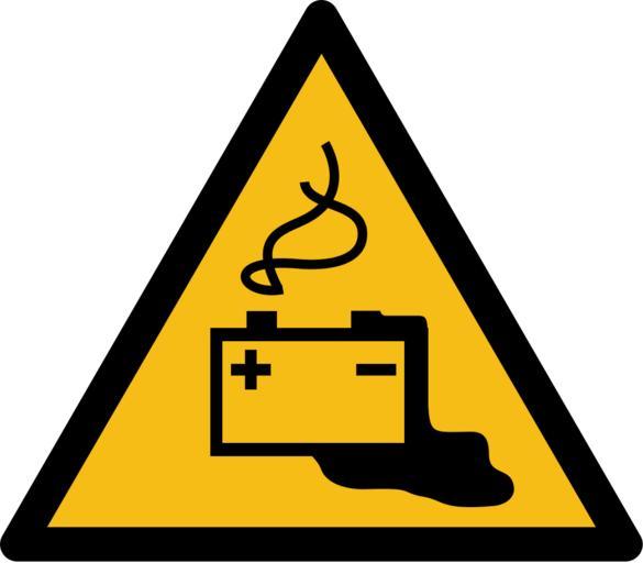 | Keywords: ISO 7010 W026.svg Warnzeichen W026 Warnung vor Gefahren durch das Aufladen von Batterien Warning sign W026 Danger from loading batteries own Technische Regeln für Arbeitsstätten - Sicherheits- und Gesundheitsschutzkennzeichnung - Quelle http //www baua de/cae/servlet/contentblob/669216/publicationFile/62400/ASR-A1-3 pdf ASR-A1-3 pdf 2013-06-05 Maxxl2 <gallery>D-W020 Warnung vor Gefahren durch Batterien ty svg</gallery> ISO 7010 warning signs W026 ISO 7010 safety signs vector drawings W026 Signs by User Maxxl2 |