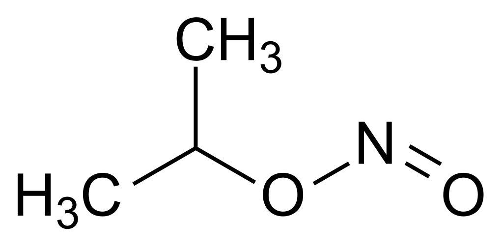 Keywords: Isopropyl nitrite structure.svg Chemical structure of isopropyl nitrite Self-made in BKChem scaled in perl 2007-08-26 User Mysid Isopropyl nitrite