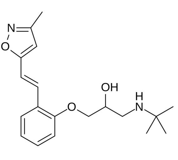 Keywords: Isoxaprolol.svg Chemical structure of isoxaprolol Own 21 21 29 March 2014 UTC Ed Edgar181 Isoxazoles Beta blockers Tert-butyl compounds