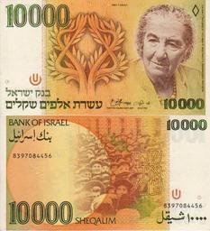 Keywords: Israel 10000 NIS Bill 1984.jpg en Israel 10 000 old sheqel banknote 1984 It was replaced with a 10 new sheqel banknote with identical design in 1985 Both notes are out of circulation today The note features a portrait of Golda Meir and the crowd of Russian Jews welcoming her as the first Israeli ambassador to the Soviet Union with the inscription shaláħ et ʻamí Let my people go Exodus 9 1 Israël - un billet de banque de 10 000 Sheqalim datant de 1984 qui n'est plus en usage avec un portrait de Golda Meir et une inscription ש ח את עמי Exode 9 1 Laisse aller mon peuple he שטר מישרא ש 10 000 שק ישן משנת 1984 הוח ף בשטר ש 10 שק י חדשי בעיצוב זהה בשנת 1985 שני השטרות אינ במחזור היו ע השטר מופיע דיוקנה ש גו דה ומאיר וקב ת הפני שערכו ה יהודי רוסיה כשהגיעה ברית המועצות כשגרירת ישרא הראשונה ע הכתובת שַ ּח את עמי שמות ט' א' ورقة نقدية إسرائيلية من فئة 10000 شيقل قديم تحمل صورة جولدا مائير تم استبدال هذه الورقة بورقة نقدية من فئة 10 شواقل جديدة ذات تصميم متجانس في 1985، وقد خرجت كلتا الورقتين من حيز التداول يحمل ظهر الورقة النقدية صورة احتشاد يهود روسيا لاستقبال جولدا مائير عند وصولها إلى الاتحاد السوفياتي كسفيرة إسرائيل الأولى لديه، مع اقتباس بالعبرية من سفر الخروج أصحاح 9، 1 شالاح إت عامي أطلق شعبي own scan User To14go 2009-01-23 Money-IL <gallery> Golda Meir Moscow 1948 jpg The photograph used on the reverse </gallery> Old Israeli shekel banknotes Persons on banknotes 1984 in Israel Banknotes with a face value of 10000 |