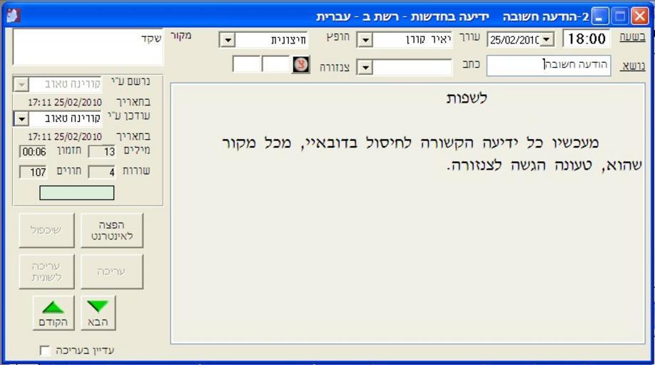Keywords: Israel Censor Mabhouh.jpg en In Hebrew The Israeli military censor requires local media to clear any news item about the assassination in Dubai from any source own חובבשירה 2010-02-25 Censorship in Israel 2010 in Israel Mahmoud al-Mabhouh