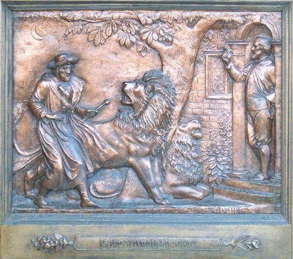 Keywords: IsThyStrengthSoSmall.JPG en Panel from the doors of the Bunyan Meeting Church Bedford Made of copper on Bronze by Frederick Thrupp 1812-1895 showing scene from John Bunyan's Pilgrims Progress own Simon Speed 2010-03-06 52 8 12 95 N 0 27 50 34 W region GB_heading S Kopimi Pilgrim's Progress John Bunyan Museum Reliefs in England 19th-century reliefs Photos by Simon Speed Frederick Thrupp Reliefs of lions in the United Kingdom |