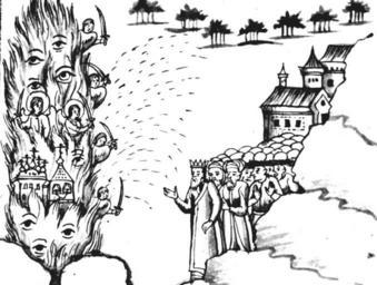 | Keywords: IstSib016 1.jpg Огненный столп от земли до небеси - видение тата ам Исто ия Сиби ская ультимедиа Цент ГУ http //www mmedia nsu ru/vbook/vbook/obj8/MINIATURES htm 1697 - 1703 С У Ремезов Author died more than 70 years ago - public domain PD-old Remezov Chronicle |