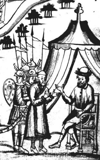 Keywords: IstSib026 2.jpg Е мак и дво ецкий Кучума му за Кутугай Исто ия Сиби ская ультимедиа Цент ГУ http //www mmedia nsu ru/vbook/vbook/obj8/MINIATURES htm 1697 - 1703 С У Ремезов Author died more than 70 years ago - public domain PD-old Remezov Chronicle |