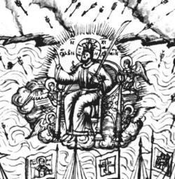 Keywords: IstSib042 1.jpg Явление и заступничество Вседе жателя п и нападении тата на казачьи ст уги Исто ия Сиби ская ультимедиа Цент ГУ http //www mmedia nsu ru/vbook/vbook/obj8/MINIATURES htm 1697 - 1703 С У Ремезов Author died more than 70 years ago - public domain PD-old Remezov Chronicle |