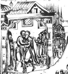 | Keywords: IstSib074 1.jpg Вст еча Е мака с п исланными из осквы воеводами Исто ия Сиби ская ультимедиа Цент ГУ http //www mmedia nsu ru/vbook/vbook/obj8/MINIATURES htm 1697 - 1703 С У Ремезов Author died more than 70 years ago - public domain PD-old Remezov Chronicle |