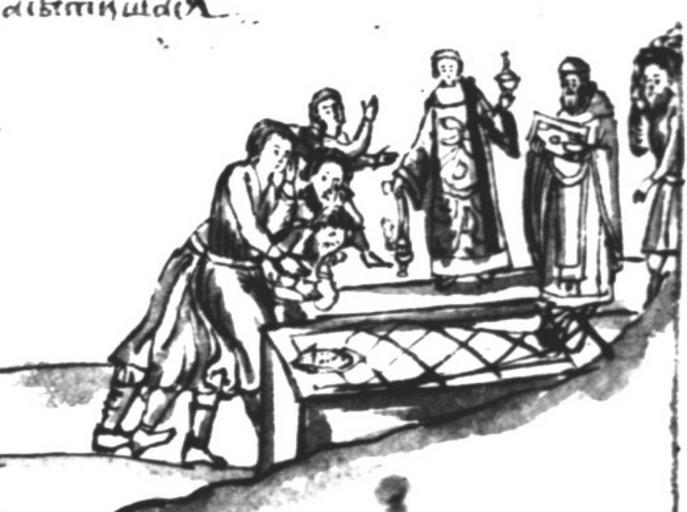 | Keywords: IstSib074 2.jpg Похо оны воеводы уме шего в голодную зиму Funerals of a Sibeira voivode who had died in a famine winter Исто ия Сиби ская ультимедиа Цент ГУ http //www mmedia nsu ru/vbook/vbook/obj8/MINIATURES htm 1697 - 1703 С У Ремезов Author died more than 70 years ago - public domain PD-old Remezov Chronicle Christian burials in art |