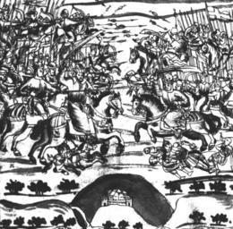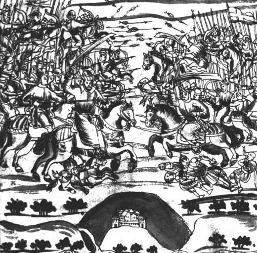 Keywords: IstSib085 1.jpg Битва Сейдяка Бекбулатова с сыном Кучума Алеем за го од Кашлык Исто ия Сиби ская ультимедиа Цент ГУ http //www mmedia nsu ru/vbook/vbook/obj8/MINIATURES htm 1697 - 1703 С У Ремезов Author died more than 70 years ago - public domain PD-old Remezov Chronicle |