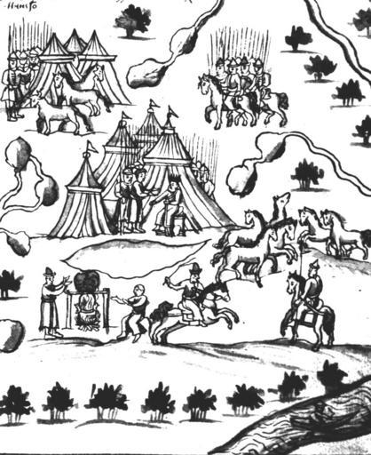 | Keywords: IstSib106 1.jpg Скитания Кучума на калмыцких убежах Исто ия Сиби ская ультимедиа Цент ГУ http //www mmedia nsu ru/vbook/vbook/obj8/MINIATURES htm 1697 - 1703 С У Ремезов Author died more than 70 years ago - public domain PD-old Remezov Chronicle |