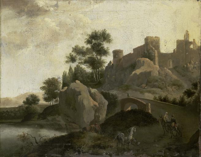 Keywords: Italiaans landschap Rijksmuseum SK-A-745.jpeg accession number SK-A-745 J G Schieblius credit line nl Italiaans landschap met een weg die langs water over een stenen brug een heuvel op naar de ruïne van een burcht loopt Op de weg een man en een vrouw op muilezels en een wit paard zonder berijder drager Height cm 52 drager Width cm 66 5 exhibition history Institution Rijksmuseum Technique oil canvas object history Acquisition 1882 object type Potential derivatives exist check http //commons wikimedia org/w/index php search Rijksmuseum+SK-A-745 this search PD-US PD-old Data and photography rights All data and all images made available through the API are either in the public domain or are subject to a CC0 license https //www rijksmuseum nl/en/api/terms-and-conditions-of-use cc-zero place of creation http //www rijksmuseum nl/collectie/SK-A-745 Italiaans landschap Q17322631 Uploaded with GWToolset Italiaans landschap Rijksmuseum SK-A-745 http //www rijksmuseum nl/media/assets/SK-A-745 Images uploaded by Fæ Images from the Rijksmuseum Dutch Golden Age paintings in the Rijksmuseum Amsterdam Dutch 18th-century paintings in the Rijksmuseum Amsterdam J G Schieblius |