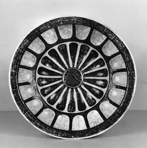 | Keywords: Italian - Bowl - Walters 44203 - Detail B.jpg The upper part of the bowl is embossed in relief with eighteen flutes decorated with floral scrolls in gilding on a white ground The rim and the intervals between the flutes are blue with floral ornaments in gilding The bottom of the bowl is of a white ground embossed with eighteen gadroons alternately blue and green tapering towards the center with their arched tops spaced between the separations of the flutes above them The gilt ornaments are the same as on the upper part At the inner center of the bowl is an applied medallion of enamel remade by André in Paris at the end of the 19th century with the arms of the Mocenigo family gules a chevron azure between three quatrefoils azure The vasiform stem is blue with eight white flutes in relief on the lower curve The foot consists of a bell-shaped upper part green with floral and other ornaments in gilding and of a depressed base blue decorated with a gilt scroll between two bands of running foliage It is held in a copper-gilt rim The inside of the foot is blue late Other date century 15 technique painted enamel copper cm 27 32 accession number 44 203 38864 Emile Gavet date and mode of acquisition unknown Sale Paris May 31 1897 no 719 J Egger date and mode of acquisition unknown Jacques Seligmann Paris November 3 1905 by purchase Henry Walters city Baltimore Walters Art Museum Henry Walters Acquired by Henry Walters 1906 25th Anniversary Exhibition of European Masterpieces The Washington County Museum Hagerstown 1956 Three Great Centuries of Venetian Glass Corning Museum of Glass Corning 1958 place of origin Venice Italy Walters Art Museum license Renaissance applied arts in the Walters Art Museum Italian art in the Walters Art Museum Media contributed by the Walters Art Museum needs category review Painted enamel art in the Walters Art Museum Gadrooning |