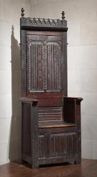 Keywords: Italian - Chair - Walters 6513 - Three Quarter.jpg The carved decoration known as linen fold is typical for the period and indeed looks like folded light-weight cloth The knobs at the sides can be turned to release the back panel so that it can swing down to be used as a table Space in homes around 1500 was often limited and furniture sparse so that the latter often had to serve multiple purposes Parts have been replaced late Other date century 15 Renaissance wood cm 197 5 70 6 accession number 65 13 28157 Elia Volpi Florence Sale Davanzati Palace and Villa Pia Collections American Art Association New York November 23 1916 no 409 Henry Walters city Baltimore Walters Art Museum Henry Walters Acquired by Henry Walters 1916 Illuminated Manuscripts Masterpieces in Miniature The Walters Art Gallery Baltimore 1984-1985 place of origin France Walters Art Museum license Renaissance applied arts in the Walters Art Museum Italian art in the Walters Art Museum Media contributed by the Walters Art Museum needs category review Media contributed by the Walters Art Museum needs artist review 15th-century furniture |