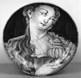 | Keywords: Italian - Dish with Mary Magdalene - Walters 481319.jpg Depicting Mary Magdalene identified by the ointment jar she cared to the tomb to anoint Christ's dead body was a way of introducing the image of a beautiful sexually attractive woman while still being able to claim that the subject was religious This dish on a low foot is painted in blue yellow ochre brown black and opaque white It features a representation of a lady on a dark blue ground with head turned three-quarters right and with curling locks over both shoulders She has brown eyes wears a blue dress and holds a covered jar The back is bluish-white with one yellow circle near the rim middle Other date century 16 Renaissance earthenware with tin glaze maiolica cm 6 7 23 1 accession number 48 1319 11530 Henry Walters Baltimore date and mode of acquisition unknown Walters Art Museum Henry Walters Acquired by Henry Walters place of origin Casteldurante in present-day Urbania Italy Walters Art Museum license Italian Renaissance maiolica in the Walters Art Museum Italian art in the Walters Art Museum Media contributed by the Walters Art Museum needs category review Casteldurante maiolica |
