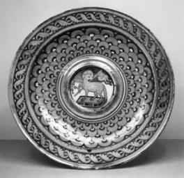 | Keywords: Italian - Ewer Basin with the Lamb of God - Walters 481320.jpg  Basins with central rounded bosses to secure ewers and low sides to hold the water poured into them were popular table and toiletry items during the early 16th century The serpentine motif around the rim and the scale pattern on the basin were often found on maiolica produced in Deruta The Lamb of God with a cross banner and standing on a book is a traditional symbol of Christ ca 1510 1530 Renaissance earthenware with tin glaze maiolica and luster decoration cm 3 9 33 accession number 48 1320 11794 Rome Henry Walters Baltimore date of acquisition unknown by purchase Walters Art Museum Henry Walters Acquired by Henry Walters place of origin Deruta Italy Walters Art Museum license Italian Renaissance maiolica in the Walters Art Museum Italian art in the Walters Art Museum Media contributed by the Walters Art Museum needs category review Deruta maiolica |