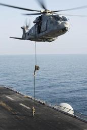 Keywords: Italian marines fast rope from EH101 onto USS Boxer (LHD-4) in 2013.JPG en Italian marines fast rope from an Italian AgustaWestland EH101 helicopter onto the flight deck aboard the U S Navy amphibious assault ship USS Boxer LHD-4 in the Arabian Gulf 2013-12-19 131219-N-JP249-053 Navy http //www navy mil/view_image asp id 167745 U S Navy photo by Mass Communication Specialist 2nd Class Kenan O'Connor PD-USGov-Military-Navy AgustaWestland EH101 of Italy 2-21 aircraft Aboard USS Boxer LHD-4 Brigade San Marco |