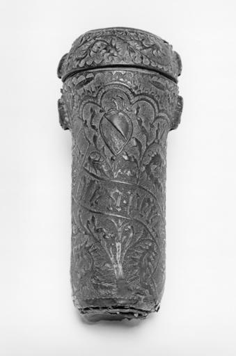 Keywords: Italian - Pen Case - Walters 73139 - Side A.jpg The sides of this pen case and cover are pierced for a suspension strap so that it could be used to transport quill pens which tended to be messy Two unidentified coats of arms are embossed on its exterior Below one is the inscription alta petit he seeks lofty things and the other reads humilitas humility The decoration was embossed in the leather after it was boiled to make it malleable ca 1500 Early Modern leather cm 17 5 7 6 7 1 accession number 73 139 16720 Edwin R Lubin Works of Art New York Walters Art Museum 1986 by purchase Museum purchase 1986 Transcription alta petit; Translation he seeks lofty things; Transcription humilitas; Translation humility place of origin north Italy Walters Art Museum license Leather embossing cases Leather cases Embossed Renaissance applied arts in the Walters Art Museum Italian art in the Walters Art Museum Media contributed by the Walters Art Museum needs category review |
