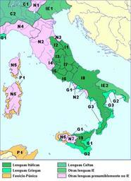 | Keywords: Italic-map.png Italic-map svg Languages of Italy before Roman expansion N1 Rhaetic; N2 Etruscan; N3 Picenian of Novilara; N4 Ligurian; N5 Nuraghian; N6-N7 Elymian and Sican; C1 Lepontic; C2 Gallic; I1 South Picenian ; I2 Umbrian; I3 Sabinian I4 Faliscan; I5 Latin; I6 Volscan and Ernician; I7 Central Italic Marsian Aequian Paelignian Marrucian ; I8 Oscan; IE1 Venetic; IE2 Mesapian; G1-G2-G3 Greek dialects G1 Ionic G2-G3 Achaean-Doric ; P1 Punic Author Davius derivative works ligurian map png Italic-map svg Maps relating to Italic peoples Maps of Phoenicia Magna Graecia Maps of Etruria Linguistic maps of Italy |
