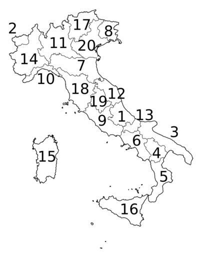 | Keywords: Italy map with regions numbered.svg Рэгіёны Італіі Regionen Italiens Sunumeruoti Italijos regionai Regióny Talianska Các vùng hành chính của Italia Tên vùng ở bảng bên tương ứng với chữ số trong bản đồ simplified Image Languages spoken in Italy svg 5 4 2007 ~~helix84 F l a n k e r Image Italy_map_with_regions svg - regions without numbers Image Italy map with regions numbered 2 svg - regions numbered pink border Image Italy_map_with_provinces svg - provinces Maps of regions of Italy Maps by helix84 Maps numbering |