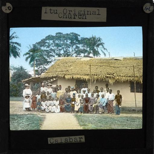| Keywords: "Itu Original Church, Calabar", late 19th century (imp-cswc-GB-237-CSWC47-LS2-040).jpg en <br> Itu Original Church Calabar late 19th century Group photograph taken outside the first mission building at Itu Calabar The group is made up mainly of children with three adults in the back row The mission building has clay walls and a thatched roof ; Itu is situated beside Enyong Creek a river within later day Nigeria Mary Slessor the Scottish missionary carried out mission work in this area In 1903 she brought two boys and a girl here to teach and conduct church services She also built a school and a church here Photographer Unknown Subject personal name Slessor Mary Mitchell 1848-1915 Filename imp-cswc-GB-237-CSWC47-LS2-040 tif Coverage date circa 1880 Part of collection International Mission Photography Archive ca 1860-ca 1960 Type images Part of subcollection Photographs from the Centre for the Study of World Christianity University of Edinburgh U K ca 1900-ca 1940s Repository name Centre for the Study of World Christianity Archival file impaunpub_Volume7/1314 url Repository address The University of Edinburgh School of Divinity New College Mound Place Edinburgh EH1 2LX United Kingdom Geographic subject country Nigeria Format aacr2 1 lantern slide 8 x 8 cm Geographic subject continent Africa Rights Contact the repository for details Part of series Mary Slessor LS2 Repository email divinity-CSWC ed ac uk Subject lcsh Keyword Church buildings; Village communities; Religious education Date created circa 1880 Publisher of the digital version University of Southern California Libraries Subject aat genre group portraits Format aat lantern slides Legacy record ID impa-m68184 Access conditions http //www ed ac uk/schools-departments/divinity/research/centres/world-christianity/collections-resources File GB 237 CSWC47/LS2/40 1880 author http //digitallibrary usc edu/cdm/ref/collection/p15799coll123/id/64436 PD-old-70-1923 Magic lantern images Images from USC Digital Library uploaded by Fæ International Mission Photography Archive ca 1860-ca 1960 Calabar |
