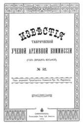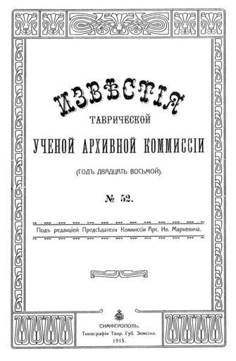 Keywords: ITUAK 52 Page 001.jpg en A title page of a scientific magazine Izvestija Tavricheskoj Uchenoj Аrhivnoj Komissii 1915 ru Титульный лист жу нала «Известия Тав ической Ученой А хивной Комиссии» 1915 «Известия Тав ической Ученой А хивной Комиссии» ИТУАК тт 52 1915 Тав ическая Ученая А хивная Комиссия 1915 PD-old Title pages from Russia |