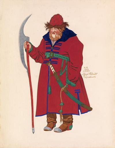 | Keywords: Ivan Bilibin 231.jpg Guard Costume Design for The Tale of Tsar Saltan Guard Costume Design for The Tale of Tsar Saltan signed twice once with initials inscribed ˜Tsar Saltan ™/Strazhnik and dated 1929 Pencil watercolour and gouache on cardboard 45 5 by 36 cm Provenance Collection of Ambassador Charles Richard Crane USA Bilibine produced the present costume design for a production of Nikolai Rimsky-Korsakov's opera The Tale of Tsar Saltan at the Théâtre des Champs-Élysées in Paris The present work comes from the collection of the American businessman and diplomat Charles Richard Crane 1858 “1939 Over the course of his travels and diplomatic missions Crane amassed one of the greatest private art collections including works by Russian artists Crane was one of the first Americans to build such an important collection of Russian paintings graphic works and icons He acquired works directly from the artists or their relatives not infrequently commissioning pictures himself With his impeccable taste and understanding of art Crane was able to collect seminal works by such eminent Russian painters as Vereshchagin Roerich Nesterov Vasnetsov and many others Heir to a dynasty of American industrialists Crane headed the family company R T Crane Brass and Bell Foundry On entering retirement he devoted himself completely to politics international diplomacy and philanthropy Crane set up numerous stipends prizes research institutions and organisations to provide support for artists writers journalists and others in the field of the humanities Even after the Russian Revolution of 1917 Crane visited the country as part of Elihu Root ™s special diplomatic mission whose aim was to secure cooperation between the USA and the Government of Soviet Russia Since Crane had always been exceptionally interested in cultural matters he met and befriended many intellectuals artists and other figures of that milieu and devoted considerable time to finding and acquiring works of art His outstanding collection is the best evidence of this http //macdougallauction com/Indexx1112 asp id 94 lx a 1929 Bilibin The Tale of Tsar Saltan opera by Bilibin Files uploaded by Shakko from various sources MacDougall's Fine Art Auctions Streltsy PD-old |