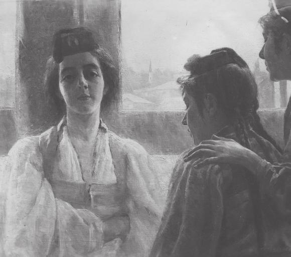 | Keywords: Ivana Kobilca - Bošnjakinja s služabnicama.jpg Artwork Creator Ivana Kobilca ~ 1900 oil canvas destroyed http //www academia edu/10294444/Ivana_Kobilca_a_Career_in_the_Context_of_Nineteenth-Century_Women_s_Painting PD-old-auto 1926 Paintings by Ivana Kobilca 1900 oil on canvas paintings 1900 portrait paintings 20th-century group portraits Three women in art 20th-century oil portraits of women at bust length Black and white reproductions of paintings in color Destroyed paintings | ||||