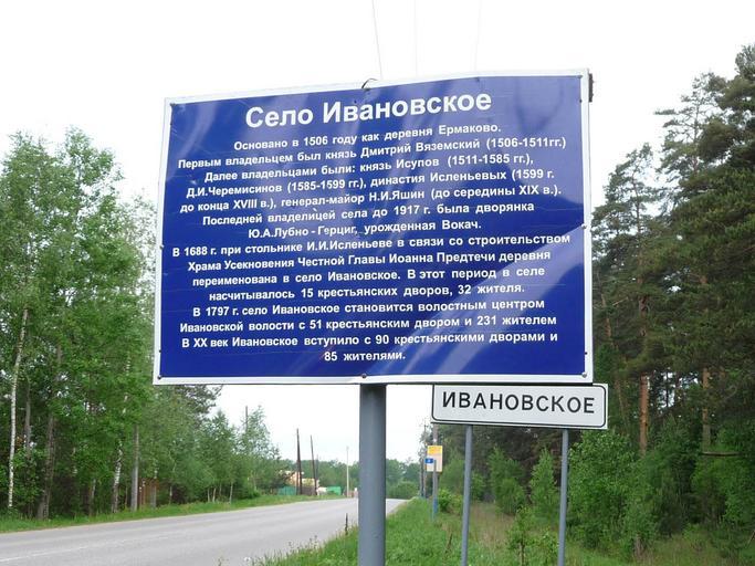 | Keywords: Ivanovskoye 10696-cut.jpg en Information stand at the entrance to the village of Ivanovskoe with the history of the village Chernogolovka Moscow oblast Russia ru Инфо мационный стенд на въезде в село Ивановское с исто ией села Го одской ок уг Че ноголовка осковская область own Fry-09 2010-05-29 Ivanovskoye urban district Chernogolovka |