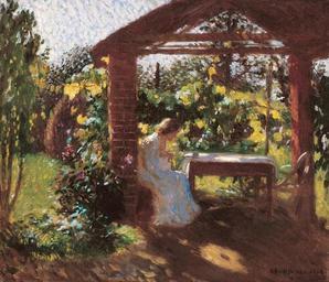 | Keywords: Iványi Lady Sitting in the Arbour 1903.jpg Artwork Creator Béla Iványi-Grünwald 1903 Oil on canvas Size cm 71 61 Private collection object history credit line bottom right Grünwald Béla accession number 000263 http //www gaborkovacsartcollection com/ Gábor Kovács Art Collection http //www gaborkovacsartcollection com/artworks/ivanyi-grunwald-bela/lady-sitting-in-the-arbour Info http //www gaborkovacsartcollection com/sites/default/files/imagecache/art_node_600/art/upload/000263_s jpg Pic PD-old-70 Paintings by Béla Iványi-Grünwald in private collections 1903 paintings Paintings of gardens Paintings of women sitting on outdoor benches |