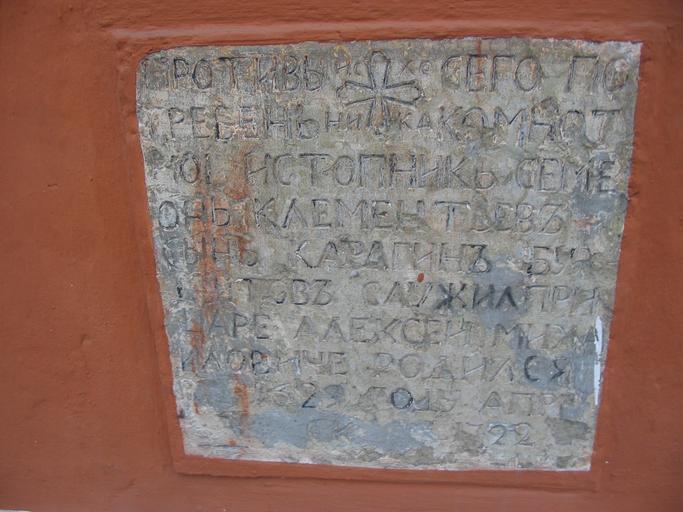 | Keywords: Izmail ch 016.jpg en Plaque commemorating the nearby grave of a stoker named Karagin died in 1722 on the wall of the Nativiry Church in Izmaylovo ru Π Π°Π΄ΠΏΠΈΡΡ Π½Π° ΡΡΠ΅Π½Π΅ ΡΠ΅Ρ ΠΊΠ²ΠΈ Π ΠΎΠΆΠ΄Π΅ΡΡΠ²Π° Π² ΠΠ·ΠΌΠ°ΠΉΠ»ΠΎΠ²Π΅ Ρ ΡΠ΄ΠΎΠΌ Ρ ΠΌΠΎΠ³ΠΈΠ»ΠΎΠΉ ΠΈΡΡΠΎΠΏΠ½ΠΈΠΊΠ° ΠΠ°Ρ Π°Π³ΠΈΠ½Π° ΡΠΌΠ΅Ρ ΡΠ΅Π³ΠΎ Π² 1722 Π³ΠΎΠ΄Ρ ΠΈ ΡΠ»ΡΠΆΠΈΠ²ΡΠ΅Π³ΠΎ Π΅ΡΠ΅ ΠΏΡ ΠΈ ΠΠ»Π΅ΠΊΡΠ΅Π΅ Π ΠΈΡ