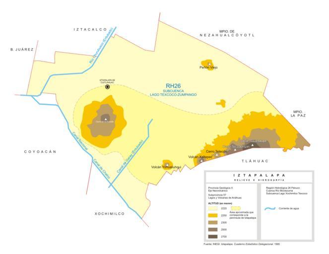 Keywords: Iztapalapa relieve e hidro.svg Mapa de relieve de la delegación Iztapalapa México en español Maps of Iztapalapa 2006-08-21 own assumed Yavidaxiu SVG maps of Mexico