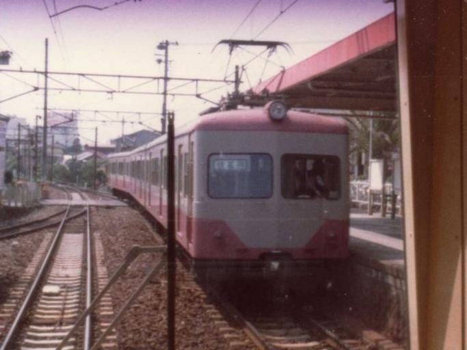 Keywords: Izuhakone 1000 from Seibu.jpg 1982 in rail transport in Japan Izuhakone 1000 series Seibu 501 series II Mishima-Tamachi Station 1982 in Japan