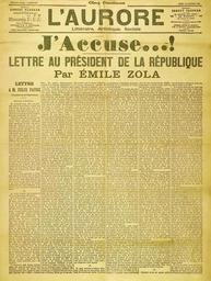 Keywords: J accuse.jpg Assessments 1 1 J'Accuse 1 1 ארכיון 10 אני מאשי Titelseite der von Georges Clemenceau herausgegebenen Zeitung L Aurore vom 13 Januar 1898 mit Émile Zolas J accuse überschriebenem offenen Brief an Staatspräsident Faure zur Dreyfus-Affäre Front page cover of the newspaper L Aurore of Thursday 13 January 1898 with the letter J accuse written by Émile Zola about the Dreyfus affair The headline reads I accuse Letter to the President of the Republic See J'accuse the whole text on Wikisource Le journal L Aurore du 13 janvier 1898 avec J accuse la lettre ouverte au président de la République d Émile Zola au moment de l affaire Dreyfus Voir J accuse le texte complet sur Wikisource Scan of L'Aurore 1898-01-13 Émile Zola PD-old-100 J'accuse 1898 newspapers L'Aurore newspaper |