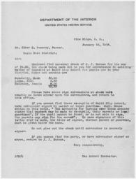 Keywords: J.J. Duncan to Elmer B. Pomeroy, Farmer, Eagle Nest District. - NARA - 284661.tif Scope and content General notes 284661 Local identifier Department of the Interior Office of Indian Affairs Pine Ridge Agency 1878 - 09/17/1947 NARA's Central Plains Region Kansas City NREA 400 West Pershing Road Kansas City MO 64108 1915-01-18 Record group Record Group 75 Records of the Bureau of Indian Affairs 1793 - 1999 Record group ARC 404 Correspondence of the Day School Inspector J J Duncan compiled 02/09/1910 - 09/06/1916 Series ARC 283922 File unit Correspondence of Day School Inspector J J Duncan January 7 1915 to April 30 1915 01/07/1915 - 04/30/1915 File unit ARC 284642 Variant control numbers NAIL Control Number NRE-75-169-I-19 yes Other versions NARA-cooperation PD-USGov Documents related to Pine Ridge Indian Reservation |