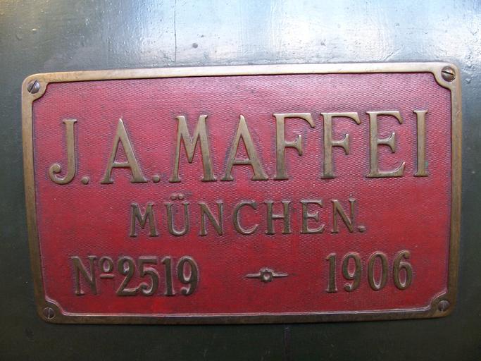 | Keywords: J.A. Maffei - Nurnberg.JPG en A board from locomotive manufacturer J A Maffei Picture made in train museum Nürnberg nl Een bord van locomotieffabrikant J A Maffei Foto is gemaakt in treinmuseum Nürnberg own Steven Lek 2009 J A Maffei Rolling stock builder's plates of German manufacturers |