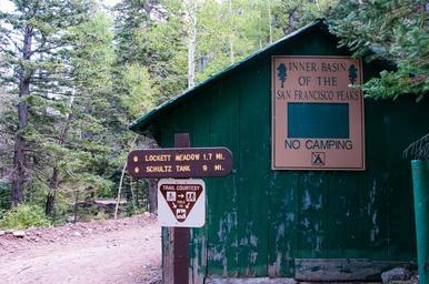 | Keywords: arizona coconino national forest coconinonationalforest flagstaff flagstaff ranger district flagstaffrangerdistrict forest service forestservice inner basin innerbasin inner basin trail innerbasintrail inner basin trail no. 29 innerbasintrailno29 jack spring jackspring san francisco mountain sanfranciscomountain san francisco peaks sanfranciscopeaks usfs waterline road waterlineroad caldera forest hike hiking mountain outdoors peaks trail volcano united states unitedstates street sign text outdoor sign signboard architecture building Buildings at Jack Spring. The Inner Basin Trail ascends from Lockett Meadow into the caldera of the San Francisco Peaks, an extinct volcano and home of the tallest peaks in Arizona. The first 1.7 miles of the trail winds through the extensive aspen forest flanking the upper reaches of the Peaks, joining the Waterline Trail briefly before following a jeep road into the caldera. The trail starts at an elevation of 8665 feet, gaining approximately 1200 feet over 2 miles on its way into the Inner Basin. The trail continues another 2 miles, gaining an additional 600 feet or so to join up with the Weatherford Trail. Photo by Deborah Lee Soltesz, August 2015. Credit: U.S. Forest Service, Coconino National Forest. For more information about this trail, see the Inner Basin No. 29 trail description on the Coconino National Forest website. Buildings at Jack Spring. The Inner Basin Trail ascends from Lockett Meadow into the caldera of the San Francisco Peaks, an extinct volcano and home of the tallest peaks in Arizona. The first 1.7 miles of the trail winds through the extensive aspen forest flanking the upper reaches of the Peaks, joining the Waterline Trail briefly before following a jeep road into the caldera. The trail starts at an elevation of 8665 feet, gaining approximately 1200 feet over 2 miles on its way into the Inner Basin. The trail continues another 2 miles, gaining an additional 600 feet or so to join up with the Weatherford Trail. Photo by Deborah Lee Soltesz, August 2015. Credit: U.S. Forest Service, Coconino National Forest. For more information about this trail, see the Inner Basin No. 29 trail description on the Coconino National Forest website. |