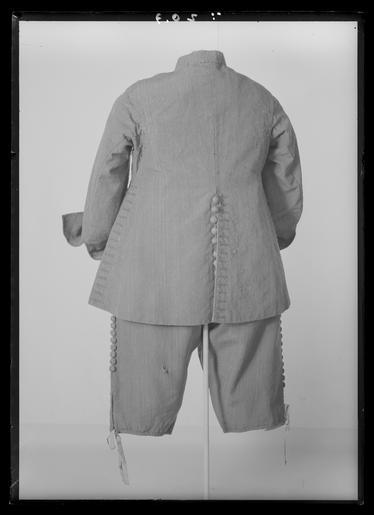 | Keywords: Jacka av grå kamlott. Tillhört Karl X Gustav (1622-1660) - Livrustkammaren - 18482.tif Denna dräkt består av jacka byxor och kanoner av grå kamlott d'Hollande Materialet är gråbrun yllekamlott med en vådbredd av 77 cm utan stad 20x8 5 tr/cm2 Varpen består av 1ljus och 1 mörk tråd som tvinnats åt höger tillsammans och inslaget består av 3 ljusa otvinnade trådar Staden utgörs av enbart 2 vita trådar <br/><br/>Jackan som till sin form mycket påminner om jackan till dräkt nr 3419 är sydd av 4 storastycken som vidgats i sidorna och rundats i kanten Den har ca 37 cm öppna skört i sidornaoch bak Jackan har sytts ihop med korta sidosömmar och mitt bak endast till midjan Ärmarna består av 2 stycken och har öppna framsömmar Jackan är mitt fram 69 cm lång ståndkragen oräknad denna är 5 cm hög mitt fram och mitt bak 3 5 cm Mitt bak är jackan 73cm lång utan krage Den har sytts så att dess korta sidosömmar sömmen mitt bak ochaxelsömmarna sytts samman från baksidan <br/><br/>Ärmarna har sytts ihop så att överstyckena ligger ovanpå de undre i den utsvängda baksömmenoch ärmarna har sedan trätts genom ärmhålet Endast den lilla korta framsömmen 15 cmlång nedanför det ca 35 cm långa sprundet har sytts ihop från baksidan I baksömmen påärmen är den nedre - raka - delen ca 15 cm lång öppen för att kunna bilda uppslag och harhär försetts med en skoning av brun rips Jackan verkar ej ha haft något mellanfoder men iärmuppslagen sitter papper mellan fodret och tyget Detta utgör styvnad för denursprungliga fastsydda garneringen av silverspets ty täta hål efter stygn visar att mansytt genom pappret det har varit en ca 9 cm bred spetsbesättning Jackan är fodrad medsilvermoiré med en vådbredd av 49 cm utan stad 64x14 tr/cm2 Varp och inslag är av vittotvinnat silke I varje inslag ligger på rätan en silverlan Stad 0 7 cm 6 gröna 6 gula 6 gröna 6 gula 6 gröna trådar samt 1 tjock vit - ripsbindning Mitt i tyget syns en randefter vattringen <br/><br/>Jackans foder är skuret på samma sätt som tyget i övrigt dock har man omedelbart ovanförsidoskörtets öppning satt in 2 horisontella kilar för att göra plagget mindre åtstramande De är något varierande i storlek och placering men ca 1 cm långa Fram har jackan en helobruten rad av knapphål på vänster sida vilket ju icke är fallet med jackan nr 23 Det ärinalles 29 knapphål 3 5 cm långa och sydda med brunt högertvinnat silke över silkestråd 8stygn/cm På höger sida sitter utefter hela kanten 28 st d 2 cm knappar av vilka dockendast de 17 översta kunnat begagnas eftersom fodret täcker de följande På vänsterframstycke finns i sidokanten 15 knappar och på höger framstyckes sidokant 16 st svarandemot de 16 knapphål som sitter i sidostyckena och baksprundet Inte någon knapp i sprundenmitt bak eller i sidorna har kunnat knäppas ty fodret har hela vägen sytts över hålen Baktill finns på vänster stycke endast 13 knappar kvar På vänster ärms överstycke sitterav knappgarneringen endast 8 knappar kvar på höger ärm finns 14 knappar kvar Ärmarnasbakstycken har vardera 16 knapphål Ärmuppslagen har skoning av brun rips på kamlotten <br/><br/>Kragen som är försedd med styvnad av fiskben instoppade i oblekt linnelärft 19x18tr/cm2 i vertikala avsyningar på drygt ½ cm s avstånd har ursprungligen varit fodrad medljus taft på insidan Detta tyg saknas nu nästan helt I jackan sitter axelsömmarna 2 sthängslen av linnelärft 20x17 tr/cm2 klädda med gulvitt siden De är något kortare framåtän bakåt och har 3 tränsade hål i varje ända så att möjlighet att reglera byxorna längdföreligger Jackan är på ärmarna och längs sprunden översållad av trådrester av grått silke även något enstaka prov på blått silke som tyder på en ursprungligen fastsydd garneringrunt kanterna I 1675 och 1691 års inventarier anmärks också att spetsarna sprättats bort isamband med 1675 års kröning original caption decade 1650 woollen Färg grå d1 - dräkt - yttermaterial material ylle - silver d2 - dräkt - foder material silver LRK Karl X Gustav av Sverige Museum Tre Kronor / Ståthållarämbetet - STÄ tidigare Kungl Husgerådskammaren 1999-2013 Modelejon 2002 place of origin original filename LN_B10732_013612 58011 inventory number LRK 21476 18482 CC0 Jacka av grå kamlott Tillhört Karl X Gustav 1622-1660 - Livrustkammaren - 18482-negative tif <gallery caption Different images of same object > File Jacka av grå kamlott Tillhört Karl X Gustav 1622-1660 - Livrustkammaren - 1360 tif File Jacka av grå kamlott Tillhört Karl X Gustav 1622-1660 - Livrustkammaren - 9920 tif File Jacka av grå kamlott Tillhört Karl X Gustav 1622-1660 - Livrustkammaren - 27044 tif </gallery> Clothing Media contributed by LSH unmatched objKeyword Clothing in Livrustkammaren 1650s fashion Media contributed by LSH 2013-10 |