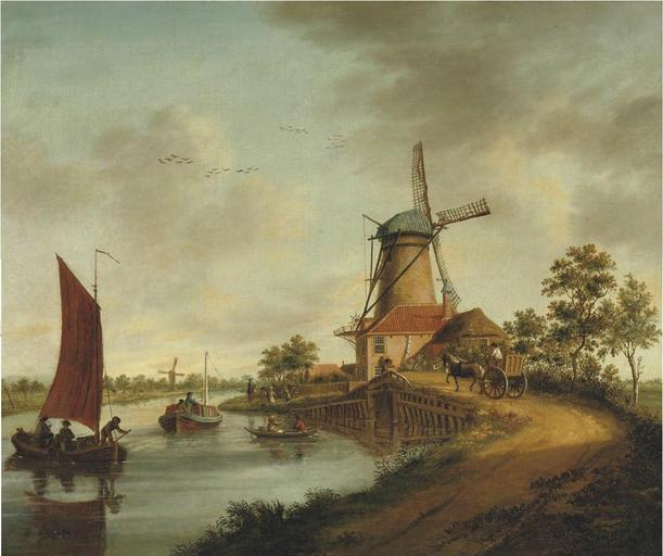 View Original:Jacob_Elias_la_Fargue_-_View_of_a_trekschuit_and_windmill_along_the_Vliet.jpg (1103x925)