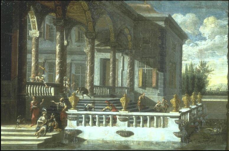 | Keywords: Jacobus Ferdinandus Saey - Perspective view of a Italian palace animated with figures and gallant celebrations2.jpg Artwork Creator Jacobus Ferdinandus Saey en Perspective view of a Italian palace animated with figures and gallant celebrations 1683 http //www culture gouv fr/public/mistral/joconde_fr ACTION RETROUVER FIELD_98 TOUT VALUE_98 Saeys NUMBER 4 GRP 0 REQ 28 28Saeys 29 20 3aTOUT 20 29 USRNAME nobody USRPWD 4 24 2534P SPEC 5 SYN 1 IMLY MAX1 1 MAX2 1 MAX3 100 DOM All Oil canvas cm 56 2 83 Institution Musée des Beaux-Arts de Valenciennes signed and dated I F SAEYS 1690 Other versions PD-old-100 Jacobus Ferdinandus Saey Flemish paintings in the musée des Beaux-Arts de Valenciennes Palaces in art |